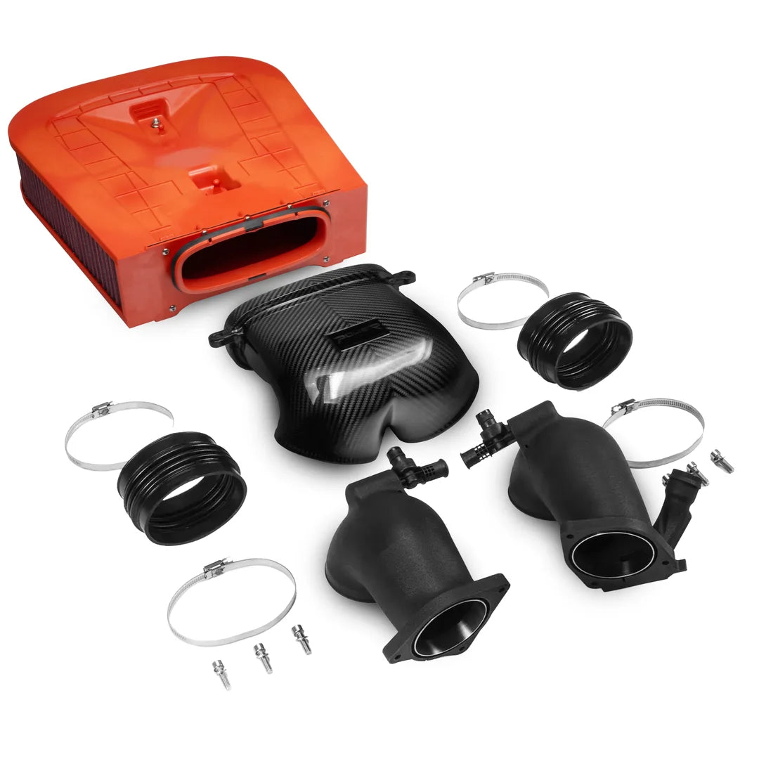 The carbon intake plenum in our High-Flow Intake system is 35% larger than OEM, delivering unmatched airflow and efficiency. Designed for seamless performance, it ensures smooth, high-volume air intake to boost engine power.